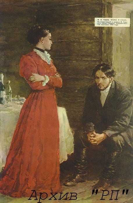 В.А.Серов, "Фома и Саша", Из иллюстраций к роману М.Горького "Фома Гордеев" (худ.выставка 1950 г)