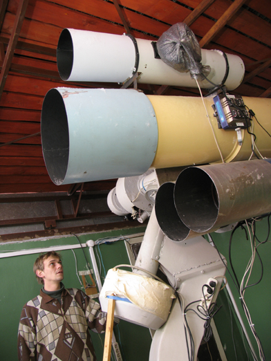 Дима у первого российского телескопа-робота. Фото Д.Чуприна. Публикация "Московский комсомолец". 2007 год.