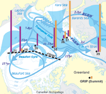 Циркуляция воды в Ледовитом океане и концентрация свинца В только что вышедшем номере журнала Science представлены результаты исследования течений в Ледовитом океане и данные по распределению свинца в осадках. Charles Gobeil, Robie W. Macdonald, John N. Smith, Luc Beaudin Atlantic Water Flow Pathways Revealed by Lead Contamination in Arctic Basin Sediments В исследованиях использовался свинец как трасер, было показано, что распределение свинца в осадках полностью контролируется подводными течениями, а атмосферный перенос практически не влияет. Сделан интересный вывод об относительной изолированности Евразийского и Канадского басейнов. В результате исследователи нарисовали картину циркуляции течений в Ледовитом океане. Указано на большой антропогенный вклад в баланс свинца. Свинец выносится вместе со стоком сибирских рек. Атлантическая вода не проникает далее Евразийского бассейна. Результатом работ стало утверждение, что система течений стабильна все последние 50 лет.