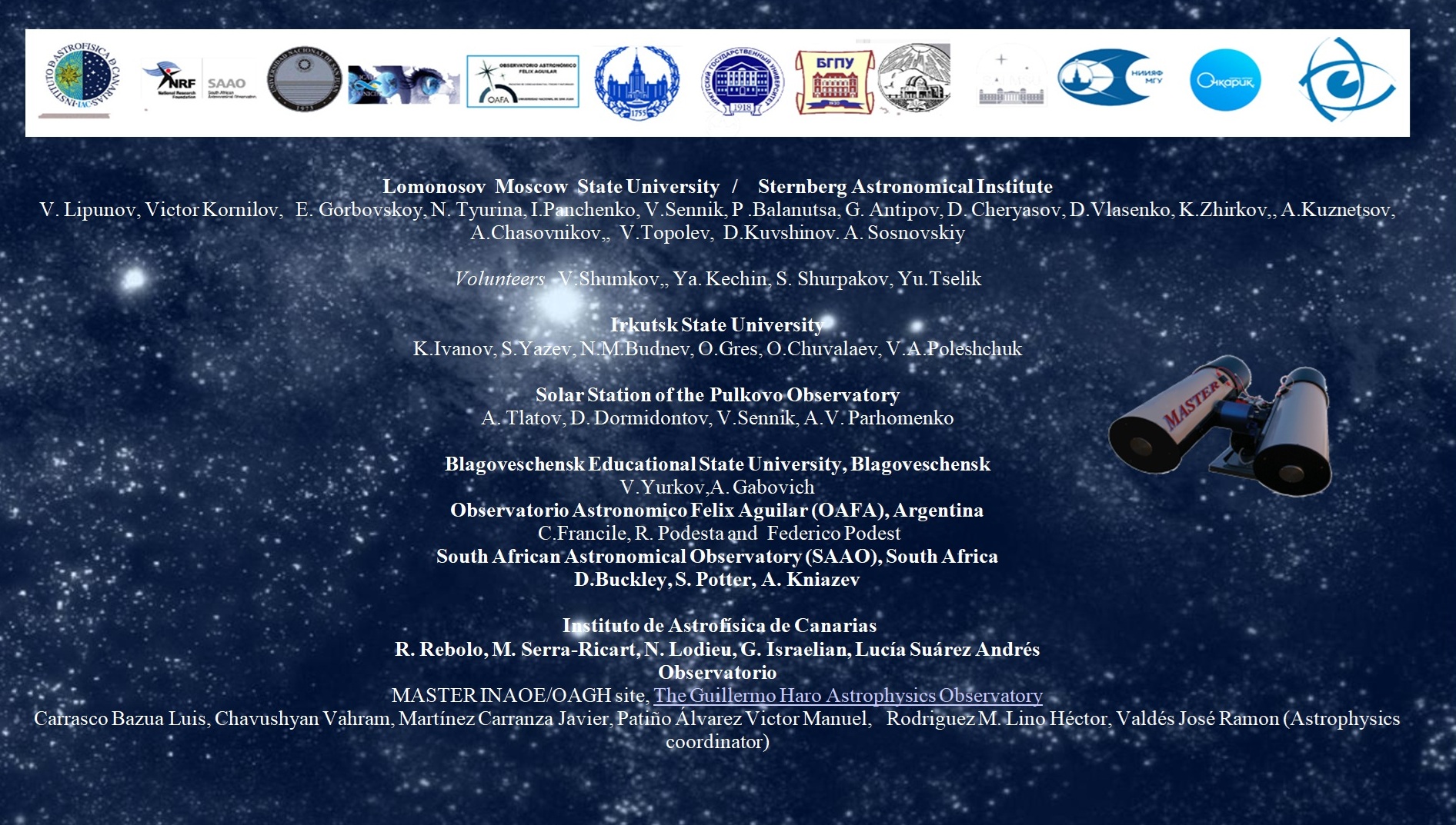 Если Вы хотите стать нашим корреспондентом напишите lipunov@sai.msu.ru