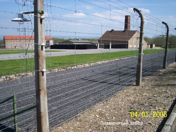 В седло и на заправку - только там ранним утром можно приобрести карту. Выбрался опять, почему-то, на "семёрку", а вскоре и до заправки доехал. Долго искал в двух картах и в трёх атласах - так мне хотелось, чтобы было поближе. Помогла продавщица-заправщица. Она вспомнила, что кажется(!), этот Бухенвальд в пятидесяти километрах. Поспорили. Вместе нашли, и я срисовал на бумажку кроки. И вот еду-еду и вдруг на горе слева вижу - что-то виднеется. Сворачиваю без указателей. Вот оно, это что-то похожее на башню, рядом! Фиг вам. Колокольня Бухенвальда такая огромная, что видна издалека и мне пришлось рулить ещё 25 километров. Путь был всегда вверх. Абсолютно без указателей! Возмущался! Забыли! ...тому глаз вон! Наконец, почти на самой макушке, в маленькой деревушке на 250 жителей, узнал точно. Осталось 3 км. Мужик, который мне дал напиться и снабдил в дорогу этим живительным напитком, ездит, не поверите! На "Ниве". Да ещё и хвалит!? То, что жрёт по 12 литров, ему до фени. Говорит, что зимой в ней холодно, а так ничего. Это местной-то зимой! Иду на последний штурм. Вхожу в лес. Уже вхожу, потому что хочется проникнуться... Здесь и они шли... За первым поворотом просека слева, и в ней видно нечто из битого кирпича... Какие-то руины...Иду туда. Это оказалась бывшая конюшня на 50 лошадей, где постоянно содержалось до полутора тысяч советских военнопленных и где уморили 8000 наших. Дорога поворачивает, и я еду мимо крытого манежа. Крыт он был давненько, а сейчас остался только фундамент. Справа остаются эсэсовские службы, оружейная мастерская, а мне прямо, где видны опять строения. И вот передо мной огромная площадь, огороженная остатками бетонных столбов с остатками же колючки.