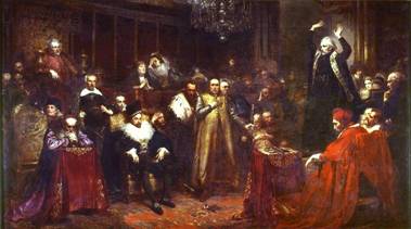 Объяснялось это просто - Сигизмунд 111 был воспитан матерью как истовый католик, он активно способствовал утверждению в Речи Посполитой Контрреформации, и именно он больше всех содействовал заключению новой унии Вообще-то об необходимости религиозной унии славянских народов - русского, польского и литвинского, говорили ещё русские князья Курбский и Голицин. Именно эту идею поддерживал и Лев Сапега во времена безкоролекства. Но тогда его идеи были отброшены и он вынужден был отказаться от них. Теперь унию предлагал Сигизмунд 111. Совсем на других, католических принципах. Сапега был любимчиком Стефана Батория. Хотел оставаться любимчиком и Сигизмунда 111. Когда в 1596 г. в Бресте собрался церковный собор, решавший судьбу православно-католической унии - и открытый противник унии, князь Константин Острожский вошёл в Брест со своими войсками, а Польша ввела туда полки своих королевских гвардейцев, поддержка Сапегами той или другой стороны стала решающей. Именно в этот судьбоносный момент Лев Сапега встал на сторону Польши и участвовал в заседании собора в качестве королевского комиссара. Но его видение унии резко отличалось от польско-папских представлений и планов. Да и присутствовал он, сказать по правде, только потому, что в качестве должностного лица просто был обязан участвовать в заседании по королевской (светской! - это особенно важно!) линии, и, как человек законопослушный, законодатель и крупнейший в то время юрист, не мог игнорировать эту обязанность. Либо он должен был продолжать исполнять свою должностную функцию, либо сложить с себя полномочия.Посмотрите на картину Яна Матейко "Проповедь Скарги" На картине Матейко мы видим дремлющего Льва Сапегу, полулежащего в кресле, а над ним пламенно выступает один из инициаторов Брестской унии Скарга. Слева над Спегой стоят Януш Радзивилл, Миколай Зебжидовский и Станислав Стадницкий, поддерживая речь Скарги. Радостно сжимает в руках шляпу, полностью поддерживая Скаргу, Миколай Вольский, будущий великий коронной маршал. Король слушает задумчиво, а над ним Анна Ягелонка держится за голову из-за мигрени. Как видите, отношение к унии у высшей знати Речи Посполитой и её у короля было неоднозначным, да и сказать о перемене взглядов и веры Сапегой нельзя. Он всё ешё думал о восстановлении независимости Великого княжества Литовского...