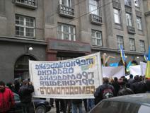 Хочется к рассказу о Сапеге добавить эпизод из жизни его сына Адама Сапеги. На средства Адама Сапеги в 1887 году был воскрешен орган галицких украинофилов "Правда". Вначале его редактируют выехавший из России Александр Конисский и Иван Франко. Этот эпизод показывает разницу в понятиях о чести нынешних наших властьпредержащих и их банкиров-мародёров и Сапег. Сегодня власть, воюя за то, кто больше загребёт, прозевала кризис, а банкиры воспользовались им, чтобы отнять у людей последнее. Народ не молчит, протестует. Народ протестует, а властям это до лампочки! Вот я сфотографировал демонстрацию перед Львовским отделением банка "Украина"людей, у которых там украли все их вклады. Думаете, кто-нибудь из руководства банка вышел к народу с объяснениями случившегося? Думаете приехал кто-нибудь из обласного руководства? Никому не было дело до обворованных ими людей!
