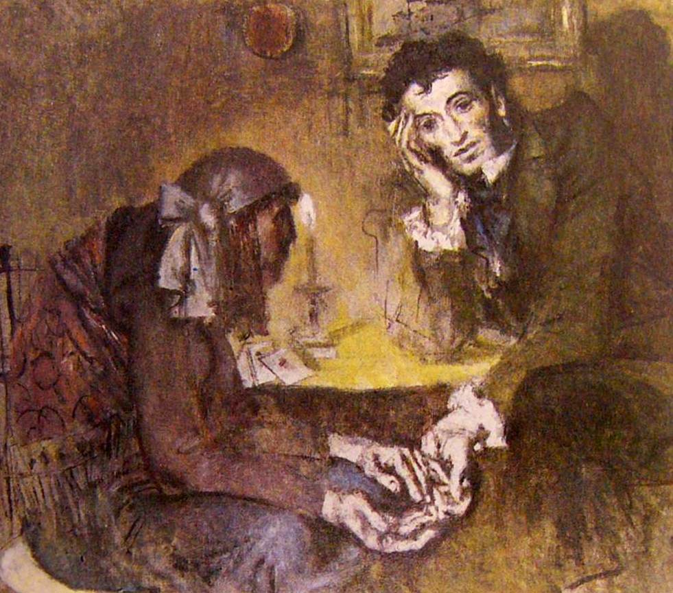 Советские люди, сами оптимисты из-за гарантированности государством и конституцией обеспечения их работой, и Пушкина понимали в соответствии с известным изречением Белинского: “Пушкин не дает судьбе победы над собою; он вырывает у ней хоть часть отнятой у него отрады”. Так совки не замечают, что Моисеенко им представил совсем другого Пушкина, каким его стали описывать после реставрации капитализма – что он в конце жизни искал смерти. Что он решил было хотя бы уйти из литературы в историческую науку. Ибо он 12 раз идеал сменил, из-за разочарования в каждом предыдущем. Устал. Жена сомнительно, что его любила. – Пессимизм.