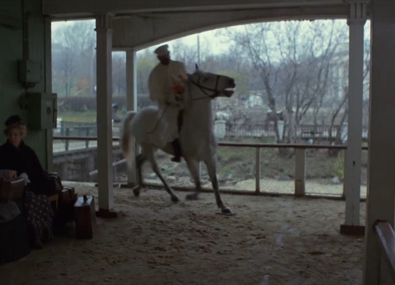 Мог Паратов знать, что он верхом на коне браво, не нагибаясь, проедет под аркой плавучей речной пристани? – Мог, строго говоря. Во-первых, мог иметь хороший глазомер и память, чтоб прикинуть, что проедет. Во-вторых, не беда, если б и нагнуться к шее коня пришлось бы. В-третьих, за ним же гнался жандарм. – Оставил бы коня жандарму чуть раньше, чем оставил. Но всё же… Для шику, какой был снят в фильме, всё было сначала промерено, а потом предложено Михалкову сыграть естественность в несколько неестественных обстоятельствах. Что есть насмешка. Далее.