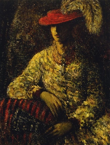 Вот если никакое лицо “Женского портрета” понимать как ужасное (лицо ж всё-таки… после веков психологизма, начиная с романтизма с того исключительностью)… То Соколова можно принять за философского ницшеанца с идеалом бегства в принципиально недостижимое метафизическое иномирие. Платье как не материя, а инкрустация тогда сойдёт за странность для 20-х годов. Необходимая, чтоб дать образ этого иномирия.