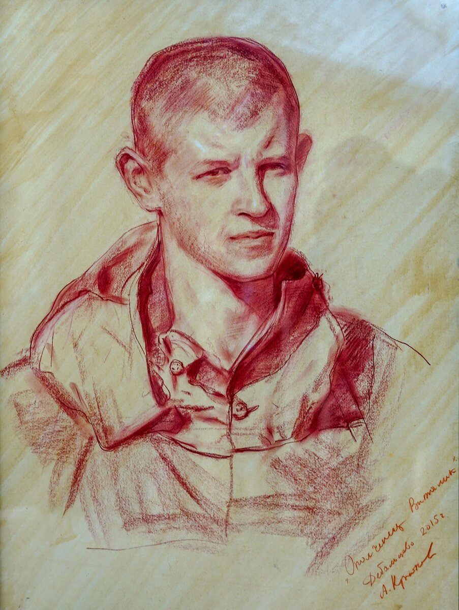 Крюков. Ополченец Виталик. Дебальцево 2015. Бумага, сепия. Это, собственно, и граждан Украины касается – почти тот же народ по геройскому менталитету. Как факт – до сих пор держится фронт при огромном отставании в огневой мощи и отсутствии воздушного господства. Жаль, парня убило… Крюков, по-моему, сумел уловить этот тушинский тип русского. То, что Виталик запечатлён не в бою, совершенно не важно. Ясно – не знаю по чему – что Виталик в бою просто занимается десятками тонких дел одновременно. И всё. Я не знаю этих тонких дел. Но они, безусловно, есть, как во всякой мастерской работе. Надо бы на примере показать, но я не писатель (я в воображении не вижу, не слышу, не обоняю того, о чём пишу). А главное, я уже десятки лет, как не живу, собственно (а только пишу и читаю для этого). Ну на военной стажировке один парень из нашего взвода отказался заправлять шнур в капсюль-детонатор – нам объяснили, если попадёт какая землица, будет трение, нагрев и взрыв, и может выбить глаз. Больше никто не струсил. Так это было три четверти века назад. И я лишь знаю, что я просто отключил чувства, оставив только внимательность. И никакого страха не было. То же и когда я на уровне второго этажа перелез из окна кухни в окно комнаты, а внизу была бетонная приступочка из пары ступенек. (Захлопнулась дверь в комнату, и оба ключа: мой и мамин, - оказались в комнате, а окна были открыты.) Я как-то прикинул, что смогу держаться двумя руками за рамы обоих окон и полез. Маме осталось только замереть в ужасе и не шевелиться. Тоже, вроде, была одна внимательность. Вот показали по ТВ (наш дрон снимал), как с украинского дрона сбрасывают на нашего солдата гранату, а он её вышвыривает из окопа и остаётся без царапины. – Тоже, наверно, страх бы лишь мешал. И в глазах у Виталика я как бы чувствую большой запас бросков через бедро и т.п. и элементарное знание, что сумеет этим распорядиться в рукопашной. И – никакого страха. Один опыт. Филигранный. Ну, наверно, это выражено горизонталями нижних век и чуть сдвинутыми бровями. Я б смотрел и смотрел на него… Начинает казаться, что я его знал… Фантасмагория – что умеют художники… А вот реализмом я этот стиль не назову, хоть он и восходит до создания типа. Простым реализмом это нельзя назвать, потому что тот намеренно не гнушается показом чего-то низкого, чтоб не назвали идеализацией. – так здесь нет ничего низкого. И тут, если и не идеализация, то типизация (русский нос картошкой и выцветшие брови и потенциальная смелость в глазах). Настоящим реализмом это тоже не назовёшь, потому что тот – угадка в социуме того нового, что уже появилась, но, кроме автора, этого ещё никто не замеиил. – Так никакого социума и никакого нового и будущего здесь нет. Наоборот. Тут вечное запечатлено, – ментальная черта характера. Это стиль спокойной мудрости после шарахания по крайностям – вечное барокко: соединение несоединимого, молодости и огромного опыта. 27 марта 2024 г.