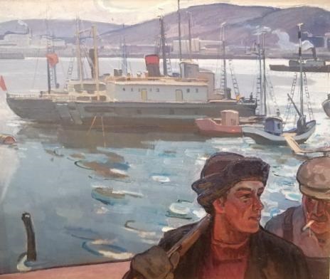 Васин. На Севере. 1960 год. Холст, масло. Так мимо второй я б на выставке не прошёл бы, а первая какая-то не привлекающая внимание (да и остальные в той статье). – Не зря его забыли? Словесное возвращение его из забвения тоже никуда не годится: "Для ранних работ Васина характерна “сочная” живопись, интерес к деталям и живая жизнь героев картин”.