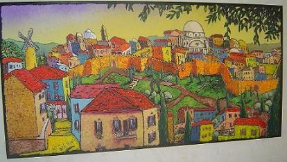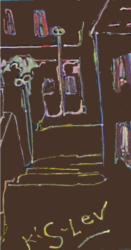 И только после этого он принялся, как в детских раскрасках с контурами, в каждом ограниченном золотистым контуром месте, класть тот или иной цвет, например, голубой для дома справа на предыдущей картинке. Этот голубой в области лестницы граничит слева с жёлто-зелёным этой лестницы. Так Кислев не доводит до золотистой линии ни голубой, ни жёлто-зелёный цвета. В результате слева и справа от золотистой вертикали остаются чёрные места (которые я и принял прошлый раз за линию обводки). А на самом деле Кислев сермяжно выражал просквоженность всего-всего небом, понимай, Духом. Правда, это больше выражает пантеизм, чем иудаизм, в котором Бог – персона. Но… “Кто до этого додумается”, - наверно, подумал Кислев. И правда: картину купили набожные евреи. То есть радикально у меня толкование не изменилось. Кислев продуцирует картины для не ахти как эстетически образованного потребителя, позволяя себе над ними тайком подтрунивать. А зачем же я написал это вот уточнение прежней статьи? Чтоб, повторяю, учить въедливости, которая нужна, чтоб тобою не манипулировали политики. Что важно, когда политики объективно ошибаются. Думайте, на кого похож Израиль: на Россию или на Украину, кто совершает военные преступления на грани опасности своему существованию? 3 ноября 2023 г. * Этот материал отказались публиковать в Ганновере, и я его публикую в России. Но, после обнаружения хоть какого-то подтверждения, что Хамас прикрывается гражданским населением. – Вот оно (перевод “Хрома”; Х – это то, что раньше было Твиттером; Илон Маск, став владельцем его, уволил контролёров контента; он не мог предвидеть, что его стремление к свободе обернётся вредом для США и Израиля):"Эрик Файнберг, вице-президент по модерации контента Коалиции за более безопасный Интернет, отметил, что ХАМАС и его сторонники смогли использовать X для относительно беспрепятственного распространения антисемитской пропаганды по всему арабскому миру” (https://www.washingtonpost.com/technology/2023/10/14/propaganda-misinformation-israel-hamas-war-social-media/). Из арабского мира и перекочёвывают на российское ТВ постановочные видео, снятые, может, после окончания прежних конфликтов, с массами людей на развалинах, не боящихся новых прилётов не потому, что в одну воронку два снаряда не прилетает. Чтоб обозначить, что снимается “теперь”, в кадр входят люди с, мол, трупами детей. Иные фейки, вроде улыбающихся трупов, покрываемых чистейшими белыми покрывалами, и т.п. можно посмотреть тут – https://www.youtube.com/watch?v=A8iPt677U3E . 6.11.2023.