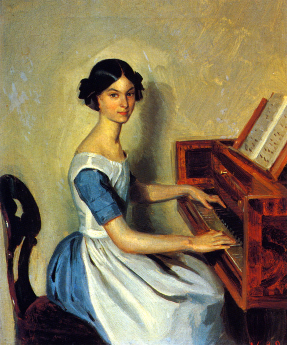 “А там, где детали художнику не нужны (как в портрете Жданович за фортепиано), так и вовсе живопись опережает саму себя – стена за плечом пианистки никак не может быть написана в 1849-м, ей место у Дега” (http://loveread.me/read_book.php?id=100990&p=54 .